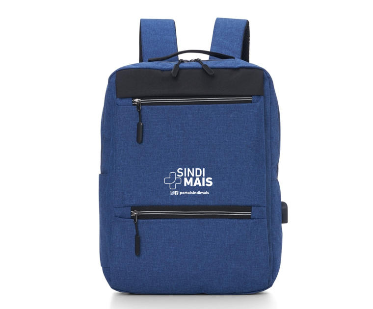 Descrição: Mochila confeccionada em nylon com compartimento para notebook até 15,6 polegadas. Contém compartimento grande com divisórias para documentos, eletrônicos e caneta, dois compartimentos frontais com abertura horizontal, bolso lateral e adaptador USB externo com cabo acoplado, permitindo a conexão de um carregador portátil de dentro da mochila e transferência da carga para o lado externo, ocultando o carregador e viabilizando a utilização do celular durante o processo. Contém zíperes com pegadores plásticos, alça de mão em nylon e alças para as costas ajustáveis com revestimento espumado antitranspirante.