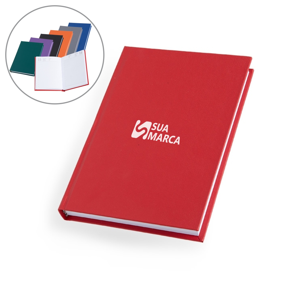 Descrição: Agenda 2025 com capa dura em cromato. Ela conta com páginas dedicadas para dados pessoais, calendários de 2025 a 2027, orçamentos pessoais, planejamento mensal, espaço para anotações diárias e lista de contatos e aniversários.