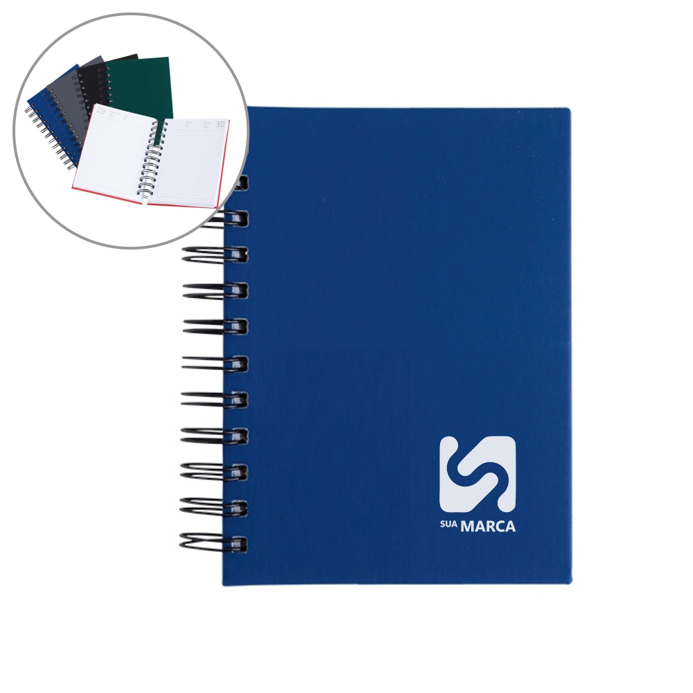 Descrição: Agenda 2026 com capa emborrachada e encadernação em Wire-O metálico. Conta com páginas dedicadas para dados pessoais, calendários de 2025 a 2027, orçamento pessoal, planejamento mensal, espaço para anotações diárias e lista de contatos e aniversários.