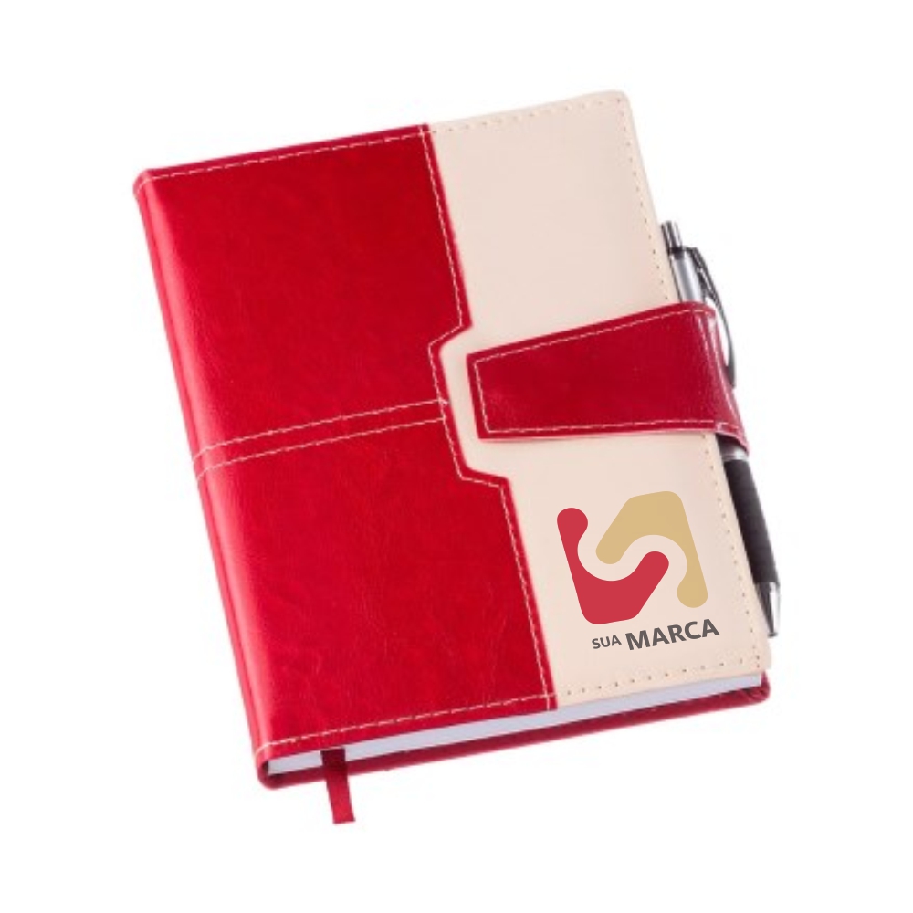Agenda diária 2026 executiva vermelha com fecho de imã e suporte para caneta (não inclusa) em couro sintético 0,6mm.