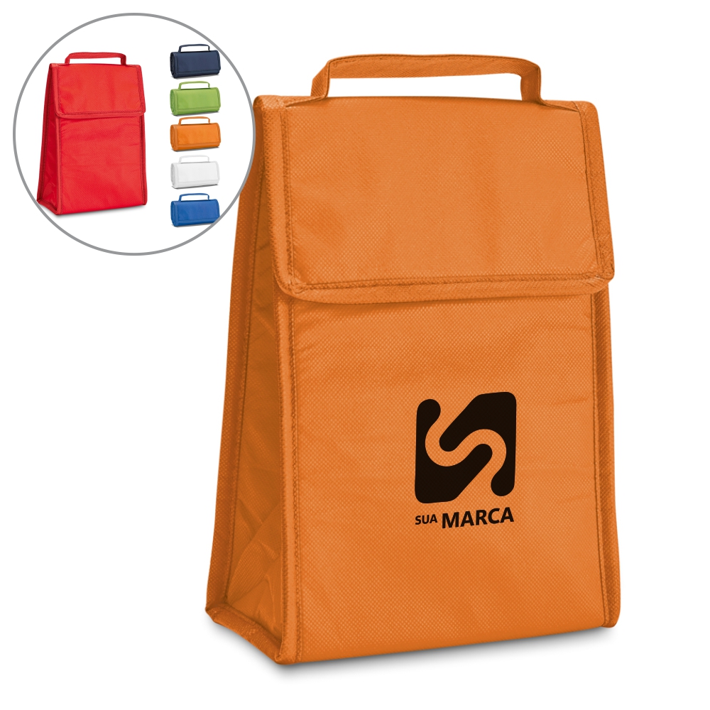 Bolsa térmica dobrável. Non-woven: 80 g/m². Fecha com velcro. Fornecida desdobrada. Capacidade até 3 litros. Food grade. Dobrada: 170 x 95 x 40 mm | Aberta: 170 x 265 x 110 mm.
