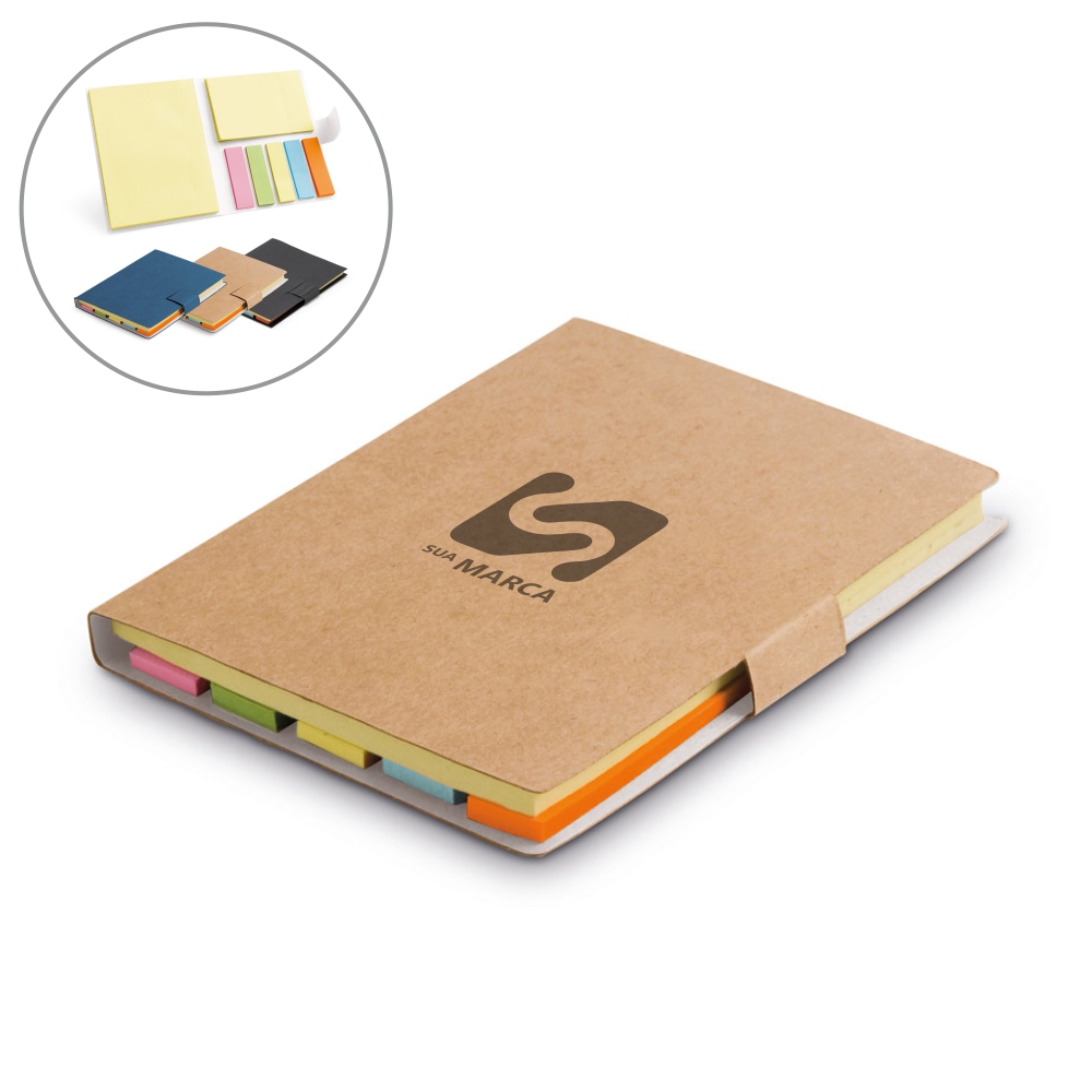 7 blocos adesivados com 25 folhas cada e capa em cartão. Este produto é feito de material proveniente de gestão florestal sustentável.