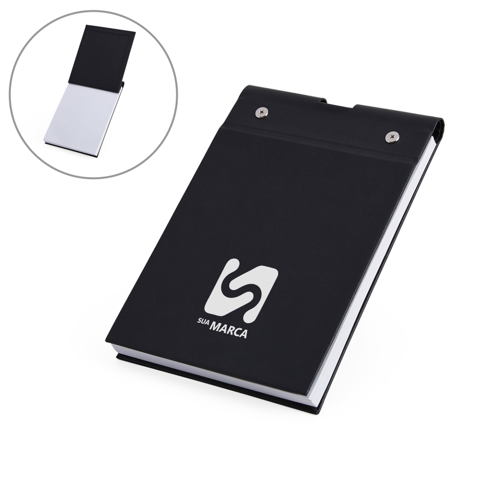 Bloco de Anotações em Couro Sintético e Porta Caneta