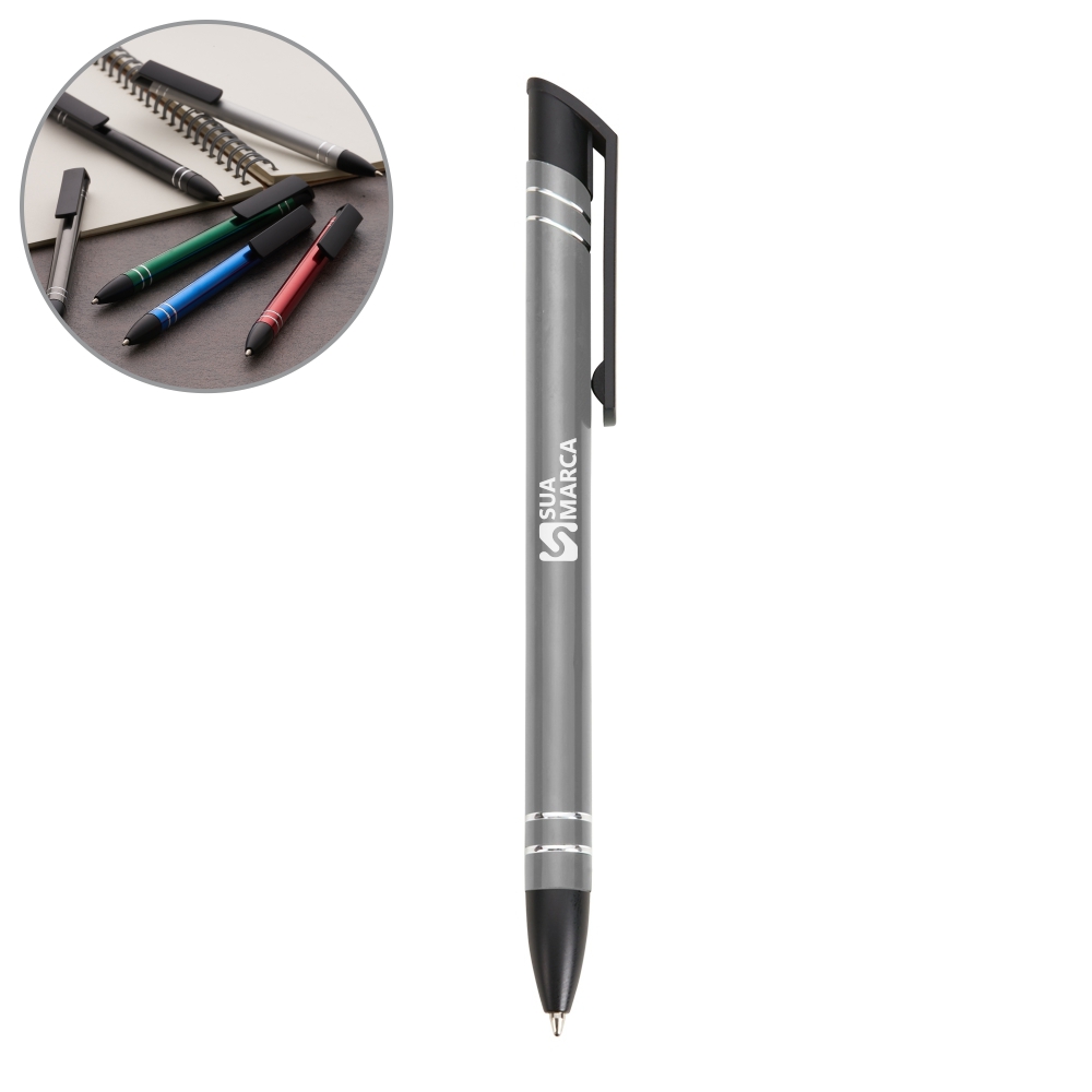 Descrição: Caneta semimetálica com carga esferográfica azul e acionamento por clique.