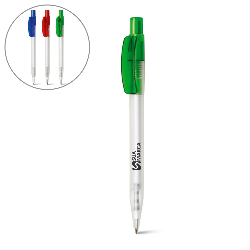 Esferográfica. Acabamento frost. Tinta Dokumental®. 2km de escrita. ø9 x 140 mm. Escrita a azul.