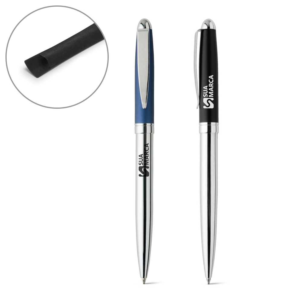 Esferográfica em metal até 2 km de escrita. Incluso embalagem de veludo. ø10 x 140 mm | Embalagem de veludo: 160 x 30 mm.