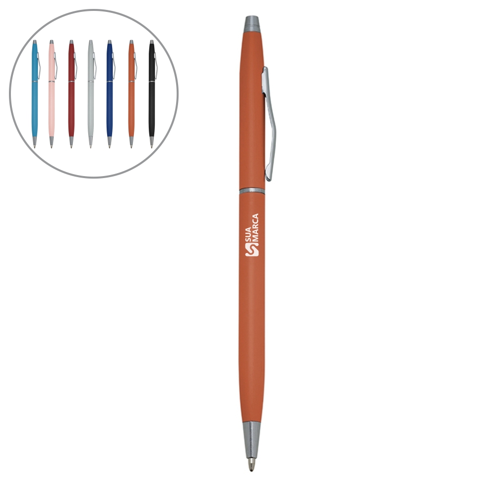 Experimente a elegância e a durabilidade com nossa Caneta de Metal. Perfeita para apresentações executivas e assinaturas importantes, esta caneta não só escreve com fluidez, mas também serve como um símbolo de profissionalismo e classe. Personalize com sua marca para um brinde corporativo de alto nível.