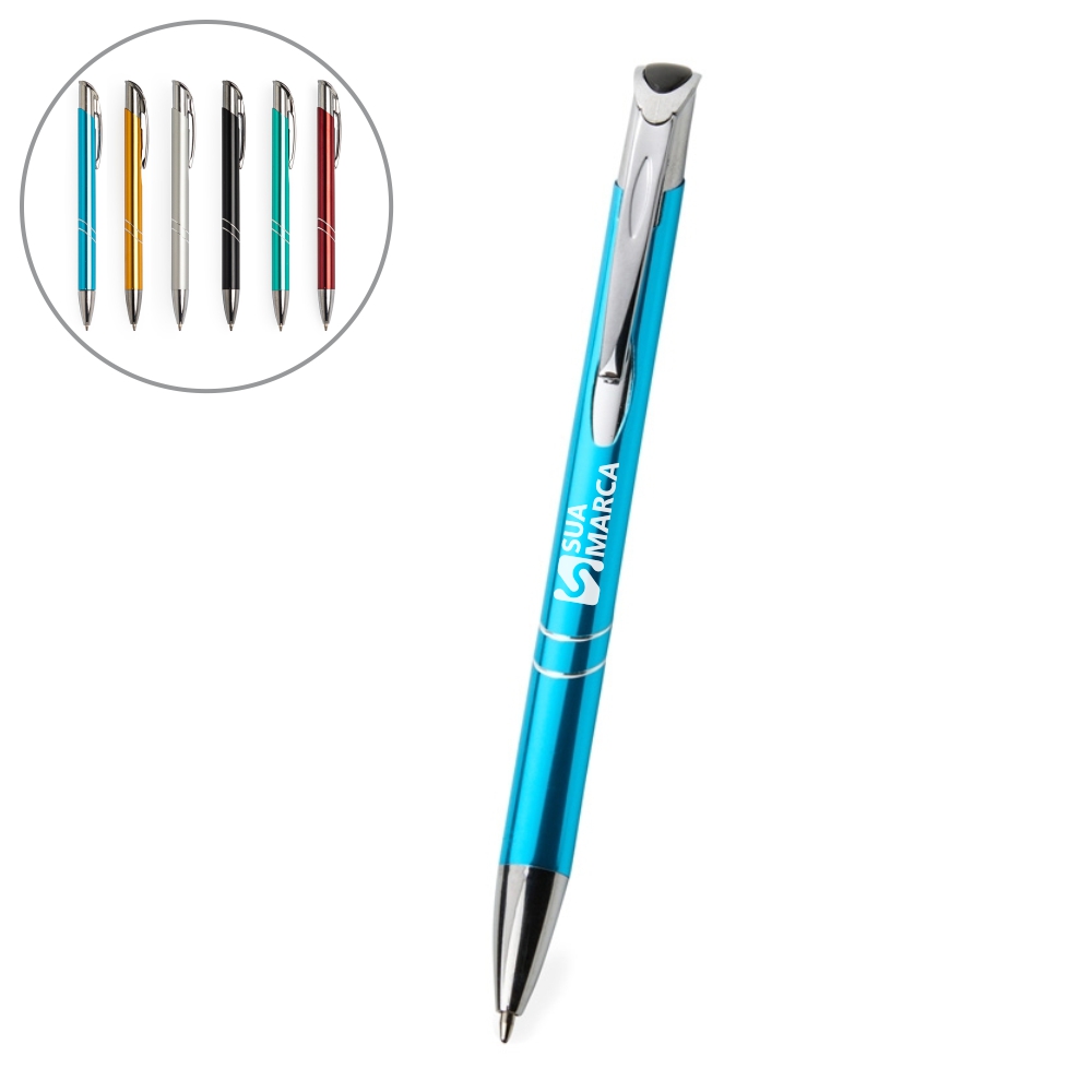 Descrição: Precisão e elegância sempre ao seu alcance! A Caneta Metálica é indispensável para anotações do dia a dia. Com carga esferográfica azul e acionamento por clique, ela proporciona uma experiência de escrita prática e agradável.