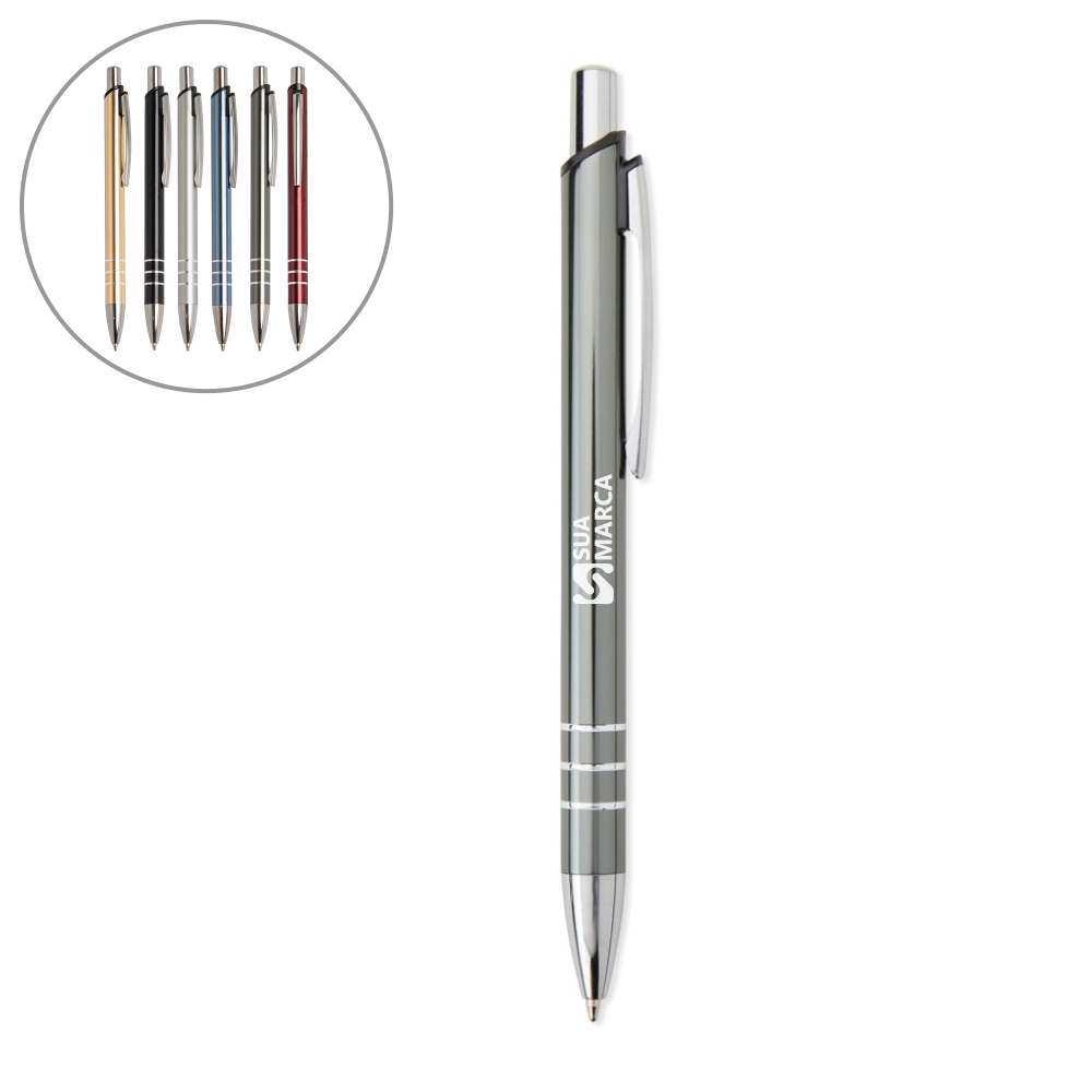 Descrição: Elegância para os dias repletos de anotações! Nossa Caneta Metálica é perfeita para ter sempre por perto, garantindo que tudo seja registrado com uma escrita firme e suave. Com carga esferográfica na cor azul e acionamento por clique, ela proporciona praticidade e agilidade no dia a dia.