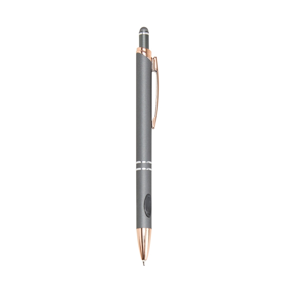 Sua carga azul de 1.0 mm possui acionamento por clique com ponteira emborrachada que que permite seu uso como uma caneta touch para interação com smartphones, tablets e demais dispositivos de telas touchscreen.
