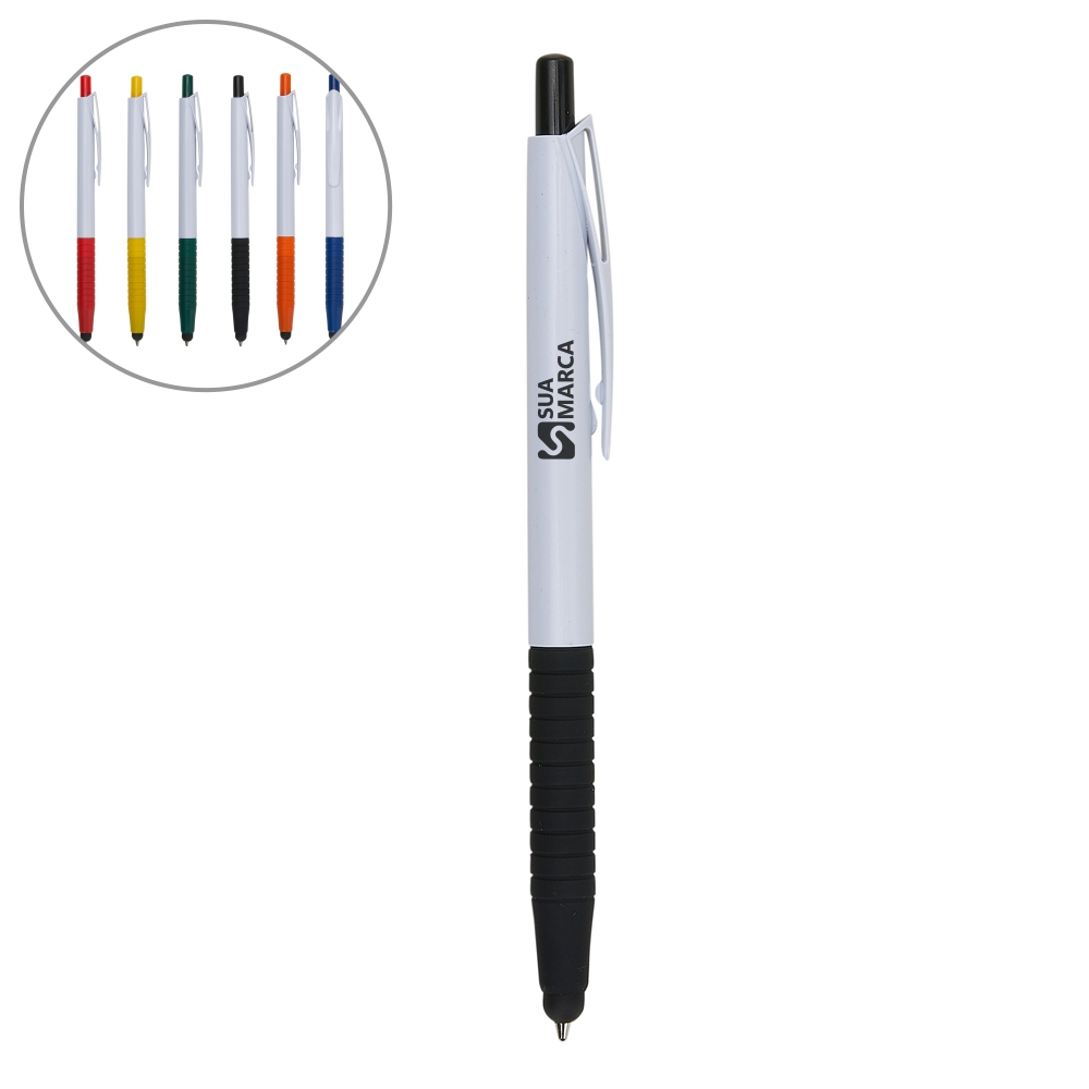 A Caneta Plástica Touch é prática e moderna, combinando a funcionalidade de escrever com a conveniência de um stylus. Esse modelo é perfeito para quem usa frequentemente dispositivos touch screen, oferecendo um brinde útil que mantém sua marca ao alcance da mão.