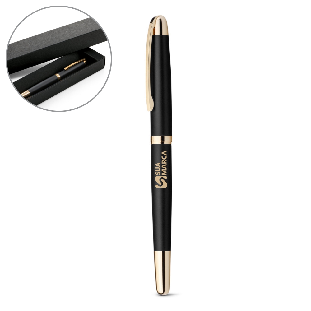Roller em metal com clipe e acabamento em dourado. Fornecida em estojo em papel craft. ø11 x 140 | Caixa: 180 x 57 x 25 mm.