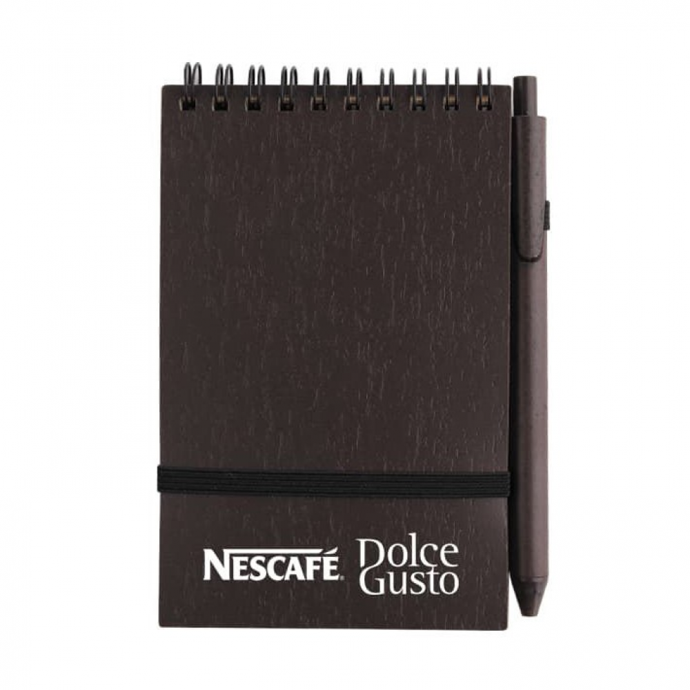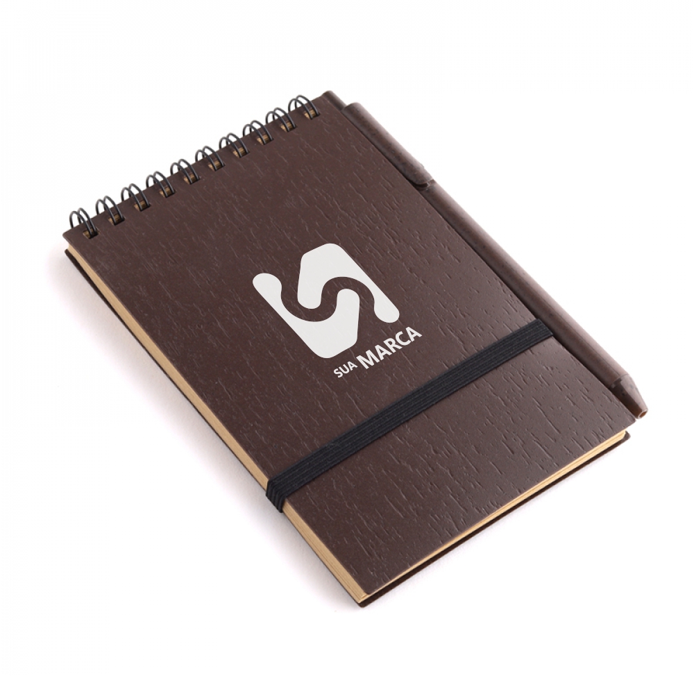 • Bloco de anotações 14 x 9cm, capa em PP (polipropileno) e café com wire-o;