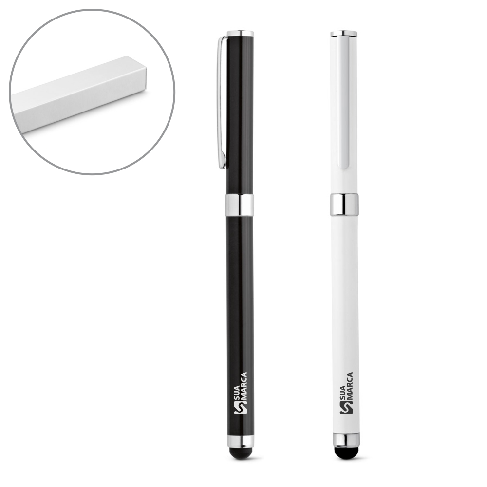 Roller em metal com corpo brilhante e detalhes em cromado. O detalhe da ponteira touch torna este brinde sofisticado e adaptável às novas tecnologias. Escrita preta. Fornecido com estojo presente desmontado. ø9 x 141 mm | Estojo: 150 x 15 x 19 mm.