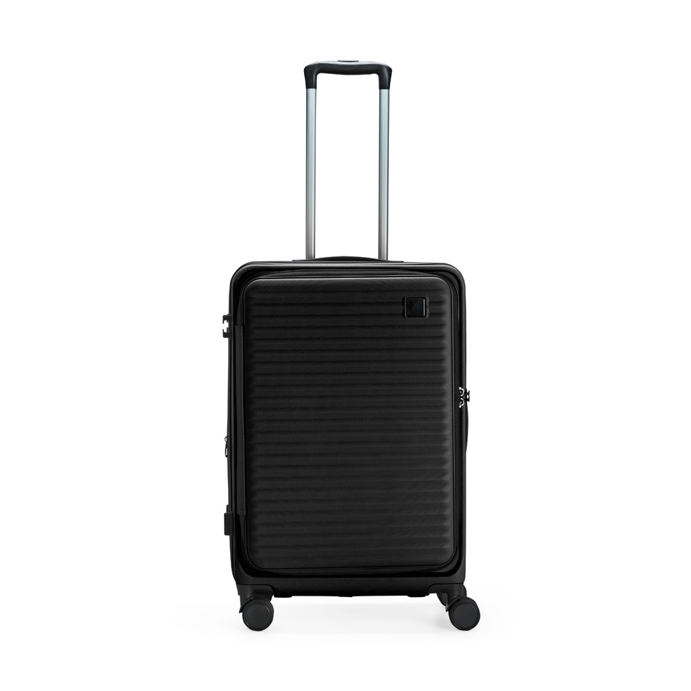 Descrição: Mala de 49 litros, resistente e funcional! Produzida em plástico ABS, conta com cadeado numérico TSA embutido para mais segurança. Seu design inteligente traz abertura frontal com bolso para notebook de até 15.6, além de divisórias internas com zíperes e cinta compressora para roupas. Precisa de mais espaço? O zíper externo expansível se encarrega de ampliar a capacidade da mala. Para facilitar o transporte, possui puxador retrátil de 3 estágios, duas alças de mão, apoios e ganchos laterais e rodinhas 360º, proporcionando mobilidade total. Acompanha plaquinha metálica grafite personalizável.