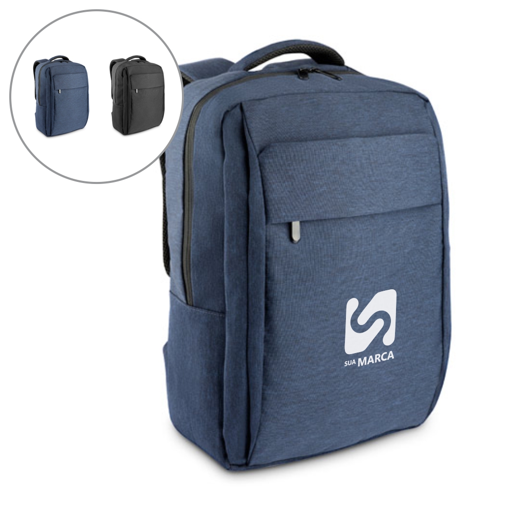 Mochila, totalmente almofadada, para notebook em poliéster reciclado 300D de alta densidade e forro em poliéster reciclado 210D. Possui um compartimento principal para notebook até 15.6", dois bolsos frontais e um bolso lateral para transportar o seu squeeze.
