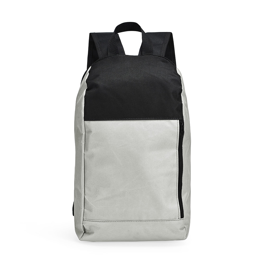 Mochila confeccionada em poliéster impermeável com fechamento em zíper e capacidade máxima de 14 litros. Conta com bolso frontal com abertura lateral, uma alça superior de mão em nylon e duas alças para as costas do mesmo tecido da mochila.
