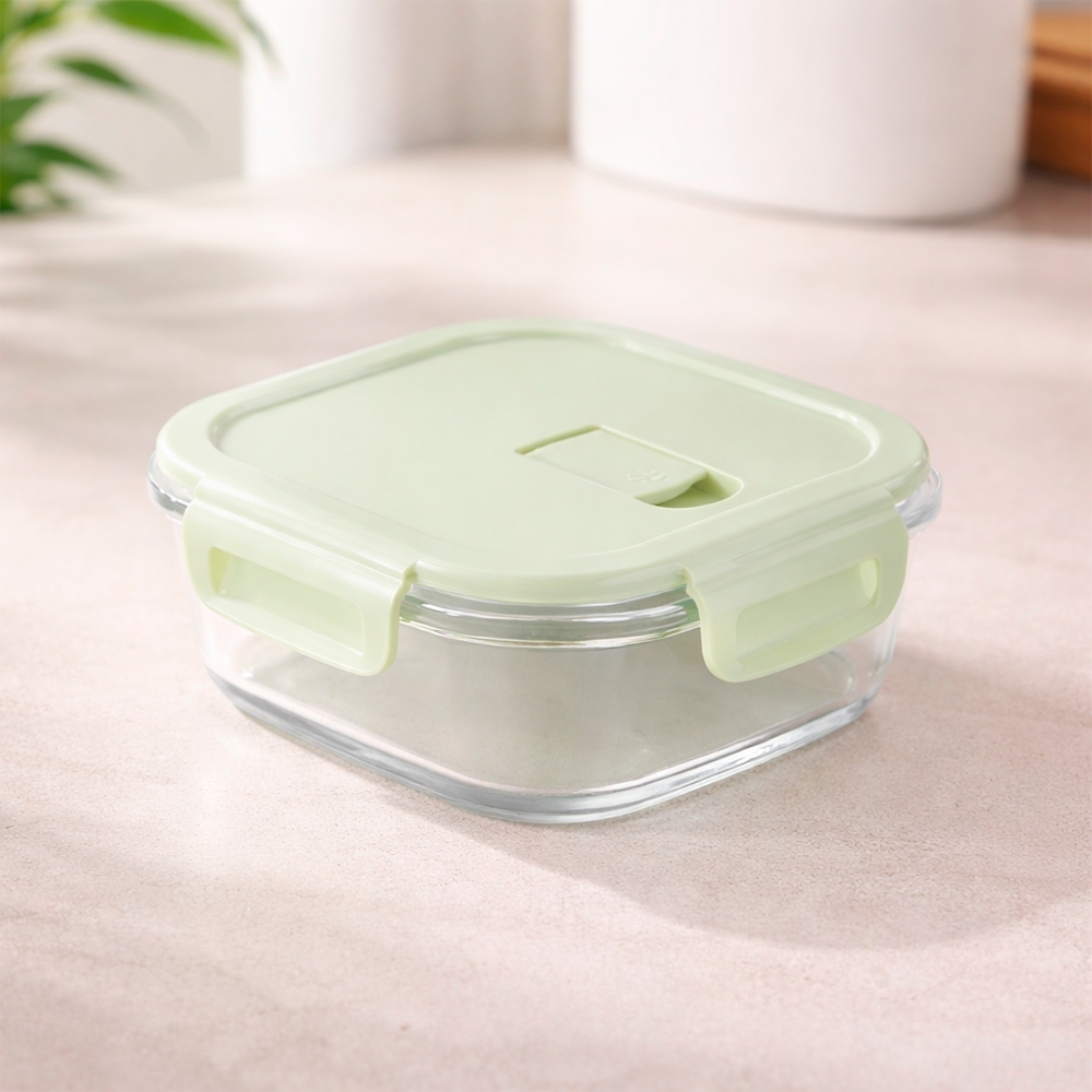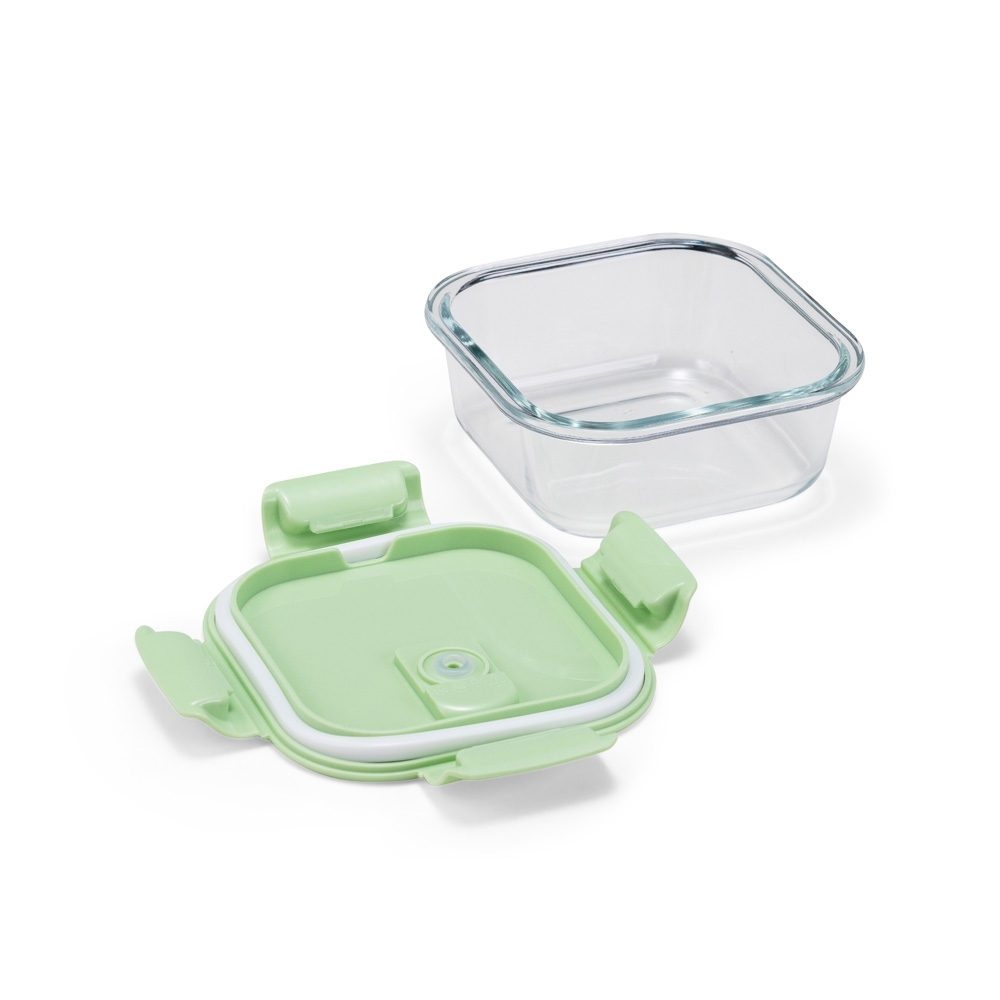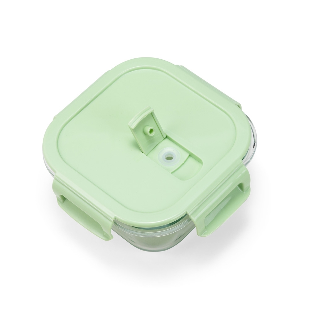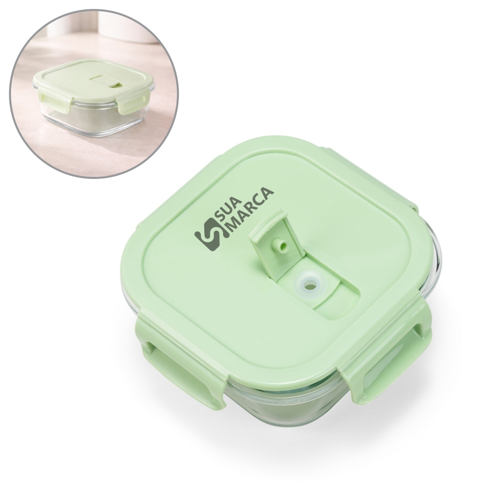 Marmita em vidro borossilicato com capacidade para até 450ml. Possui tampa hermética em plástico polipropileno (PP) livre de BPA com travas laterais e válvula de respiro para facilitar a abertura.