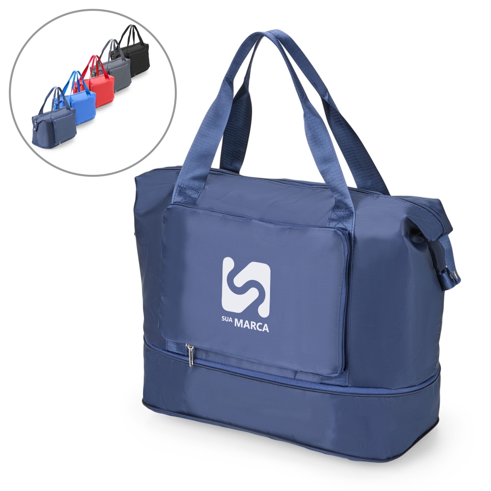 Descrição: Uma bolsa que leva em conta as necessidades de quem espera por mais praticidade. Feita em poliéster impermeável e com capacidade máxima expansível em até 25 litros através do compartimento inferior fechada em zíper, é uma ótima opção para viagens de curta ou longa distância. Além do amplo espaço, ela conta com dois bolsos externos, incluindo um bolso com espaço para o encaixe de alças de malas de viagem e, com isso, é possível criar combinações práticas em deslocamentos. Ainda é possível dobrar a bolsa enquanto vazia para guarda-la em malas ou caixas. Acompanha duas alças transversais fixas.