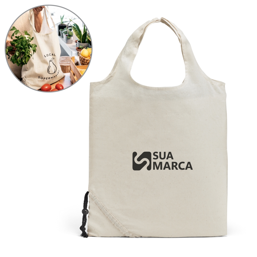 Sacola dobrável. 100% algodão: 100 g/m². Fornecida desdobrada. 370 x 400 mm.