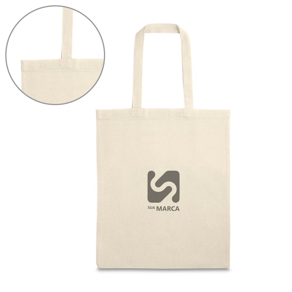 Sacola em 100% algodão (120 g/m²), com alças de 40 cm.