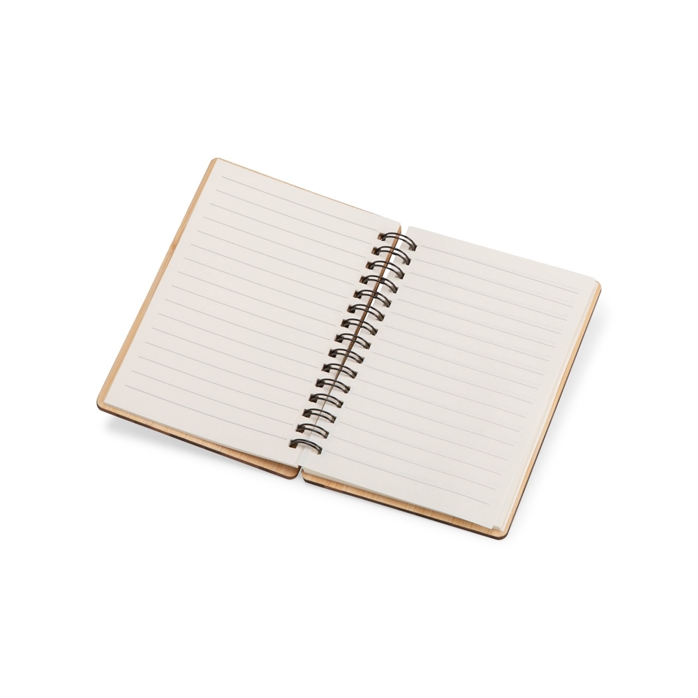 Descrição: Kit executivo ecológico em bambu composto por três itens: um caderno capa dura com encadernação Wire-O e aproximadamente 68 folhas na cor marfim pautadas; caneta com detalhes em metal, topo emborrachado para uso em dispositivos touchscreen, acionamento por clique e carga esferográfica azul de 1,0 mm; e chaveiro com argola e placa personalizável em metal. Acompanha embalagem em papelão com berço em espuma para acomodação dos itens.