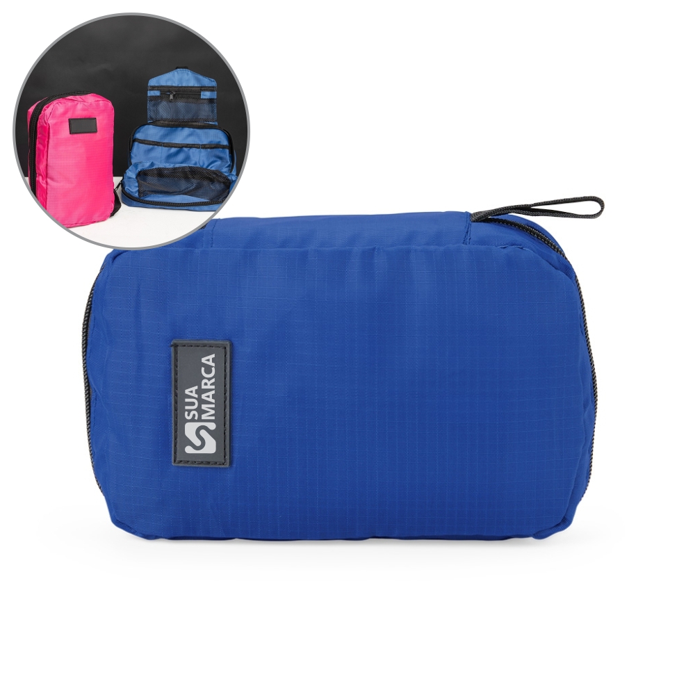 Descrição: Organize itens de higiene com praticidade e estilo com esta nécessaire de boa capacidade, perfeita para viagens ou uso diário. Ela oferece três compartimentos funcionais: um bolso superior em malha para pequenos objetos, um compartimento central com zíper para itens maiores e três bolsos organizáveis para fácil acesso. Além disso, o bolso inferior com visor em malha permite a visualização e um acesso mais fácil aos itens mais volumosos, evitando que algo passe despercebido. Super prática, a nécessaire vem com um gancho para pendurá-la, garantindo acesso rápido e sem complicação. Feita em poliéster, ela é compacta, leve e cabe perfeitamente em mochilas e malas. Para dar um toque pessoal, conta com um espaço em material emborrachado, ideal para uma personalização exclusiva.