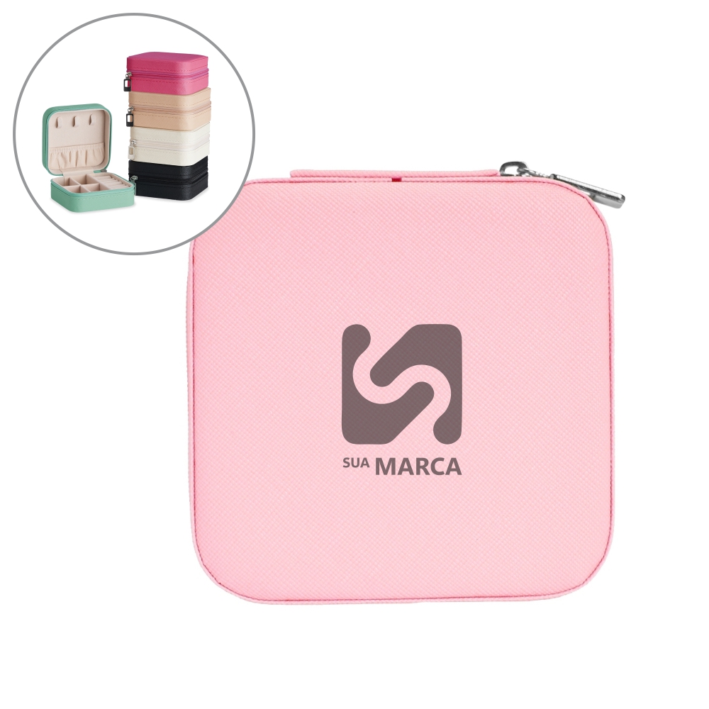 Um porta-joias é um item elegante e pessoal, perfeito para o público feminino ou para eventos voltados ao público de luxo. Personalizar esse item com sua marca pode associá-la a valores como sofisticação e cuidado, fazendo com que sua marca seja lembrada em momentos íntimos e especiais.