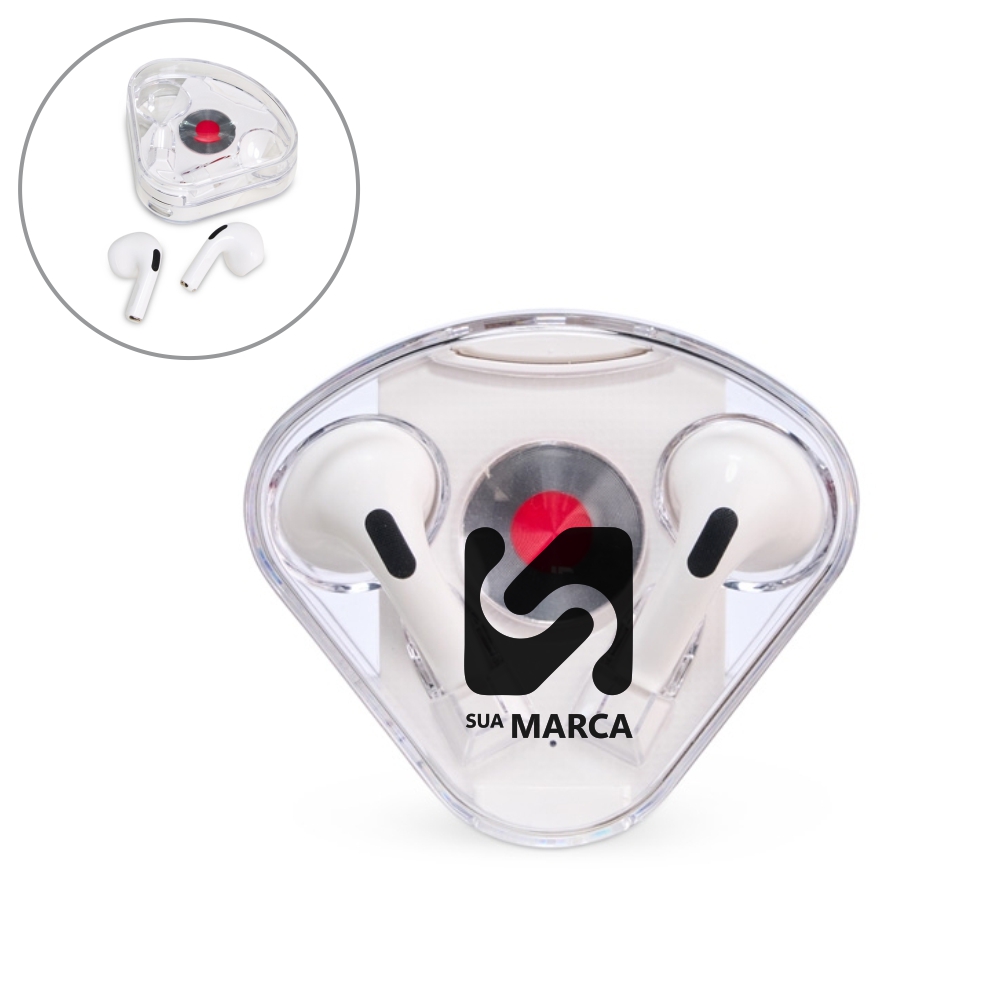 Descrição: Fone de ouvido bluetooth com comandos touch e case carregador de fechamento magnético. Acompanha USB Tipo-C.