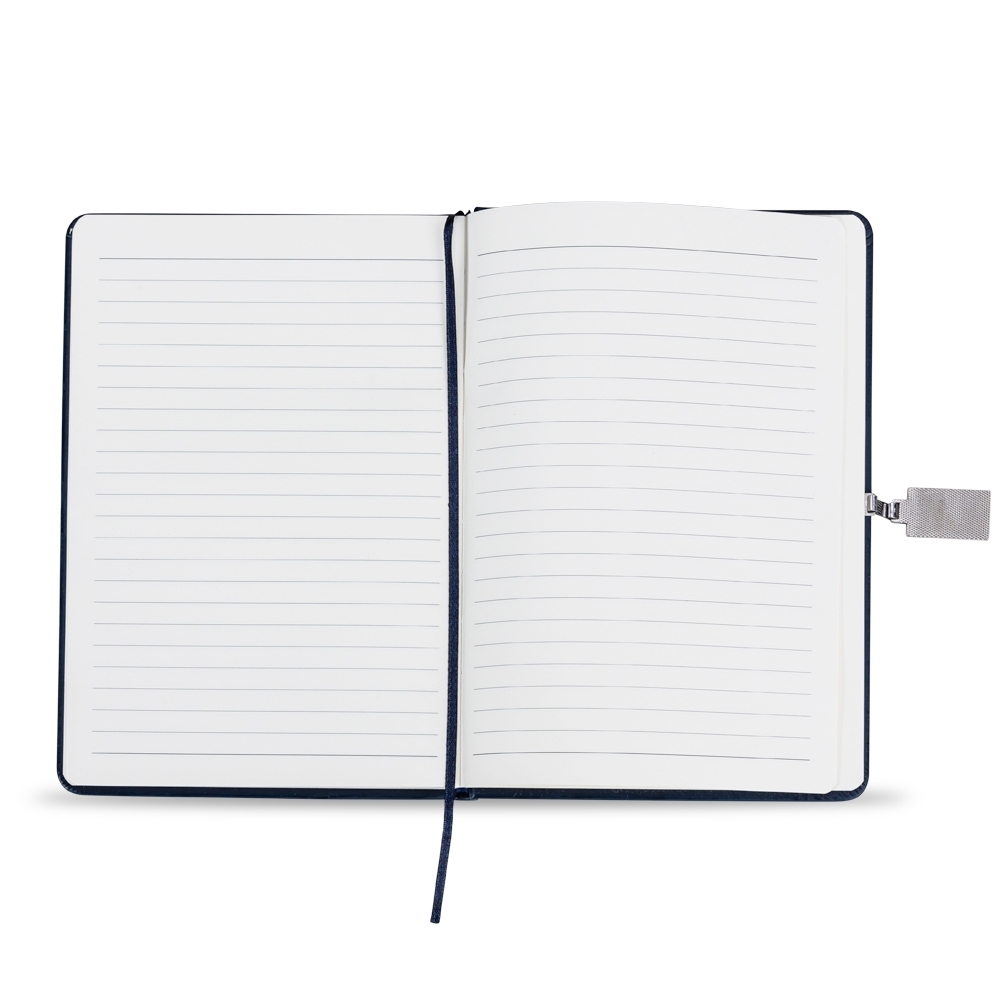 BX18504 - A caderneta emborrachada com fecho metálico imantado oferece elegância e praticidade para anotações do dia a dia. Com aproximadamente 96 folhas pautadas na cor amarela, marcador de páginas em cetim e acabamento sofisticado, é ideal para reuniões, planejamento e organização de ideias.
