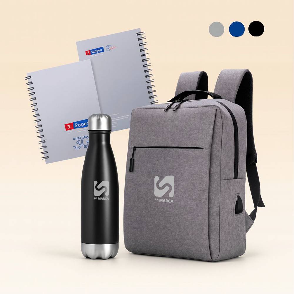 Ref. BA440C Mochila para notebook em tecido poliéster 500D e interior em 210D. Parte externa: Dois bolsos frontais com zíper, dois bolsos laterais. Conector USB. Alça de mão e alça de ombro acolchoada. Parte interna: Compartimento acolchoado para notebook até 15.6" e divisórias para melhor organização.
