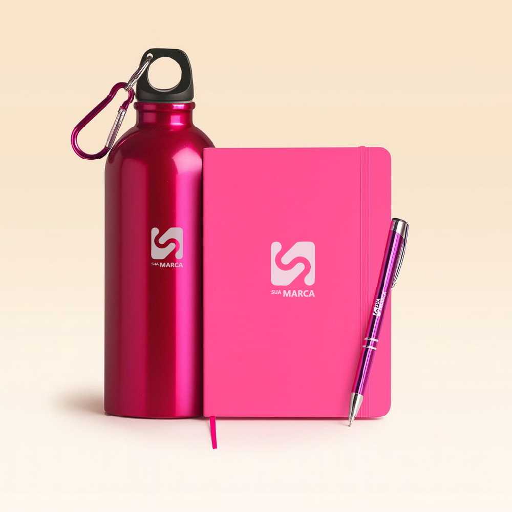2 - Caderneta emborrachada - Ref. 14092N com porta caneta elástico em nylon, marcador de página em cetim e fita elástica de nylon para fechar. Contém aproximadamente 80 folhas pardas pautadas.