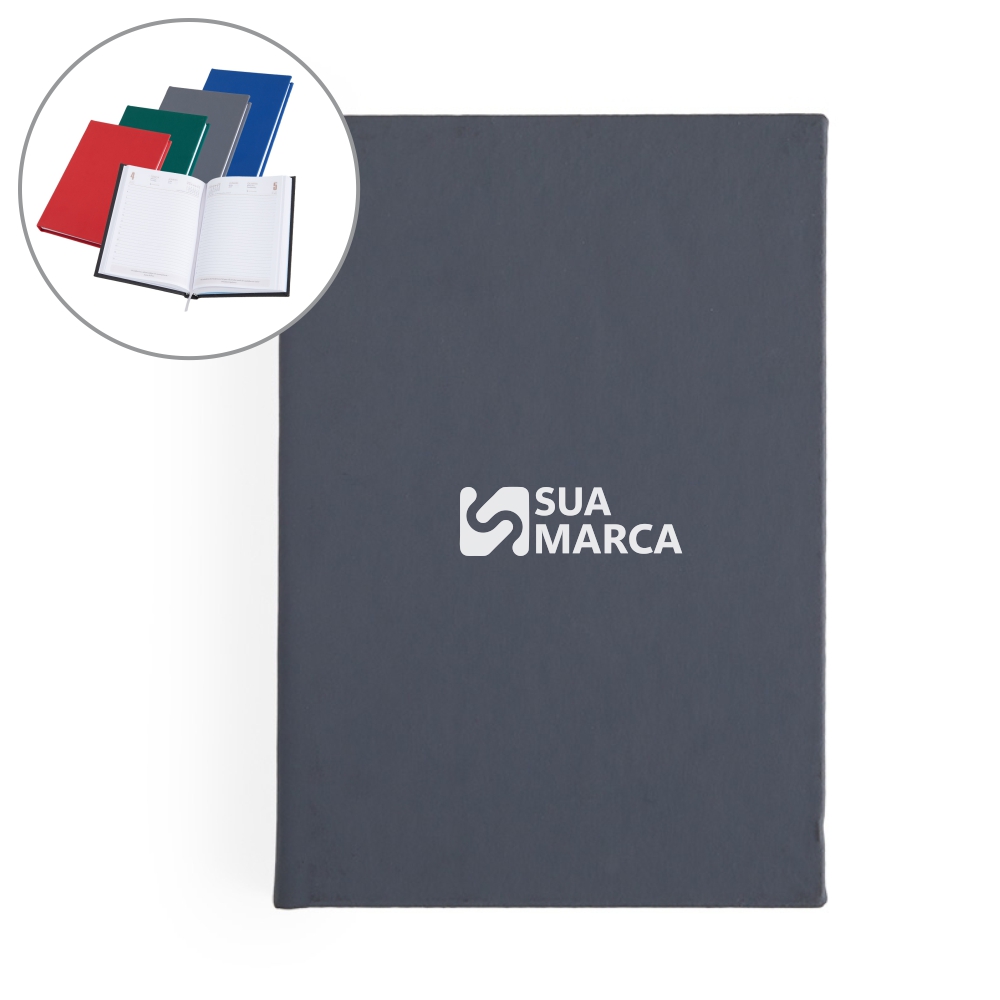 Descrição: Agenda 2026 com capa dura de revestimento emborrachado. Contém páginas dedicadas para dados pessoais, calendários de 2025 até 2027, orçamentos mensais, anotações, planejamentos mensais, lista de contatos e mapas.