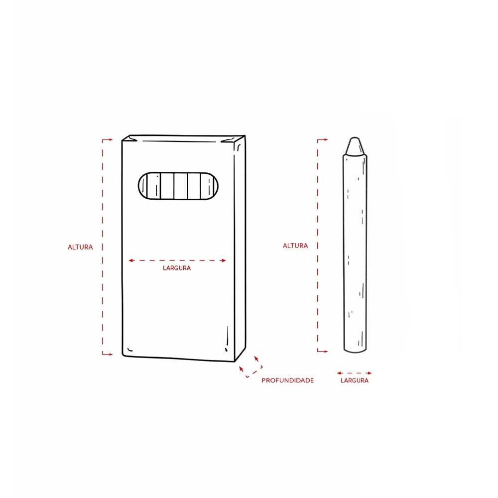Kit de giz de cera com seis cores. Acompanha embalagem em papel kraft.