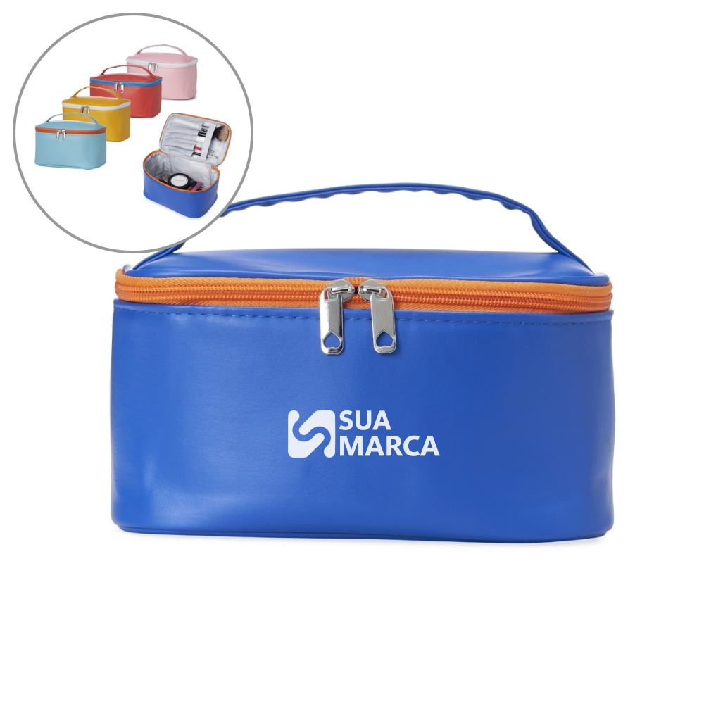 Descrição: Nécessaire organizadora impermeável em PU. A parte interna da tampa possui cinco compartimentos com elástico de proteção.