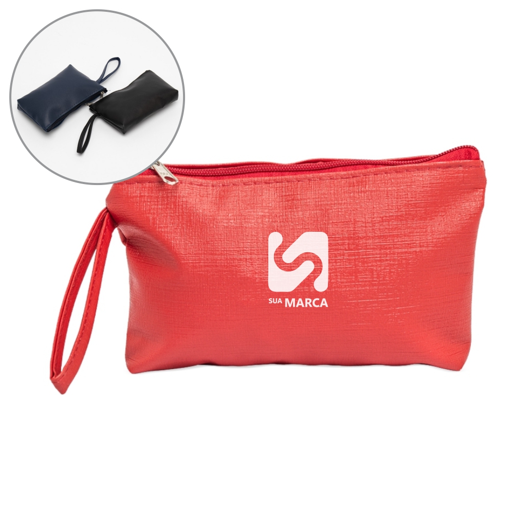 Descrição: Nécessaire em couro sintético resistente à água com alça para transporte.