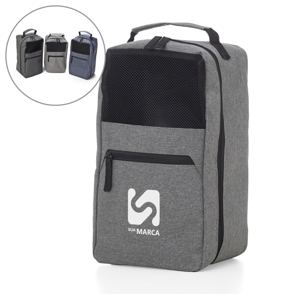 Porta Tênis em tecido nylon com bolso frontal e alça de mão;