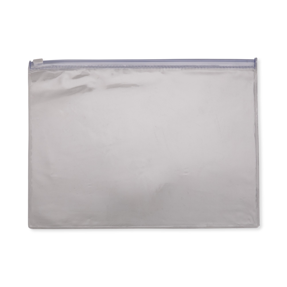 Descrição: Pasta feita em plástico transparente com fechamento zip zap deslizante.