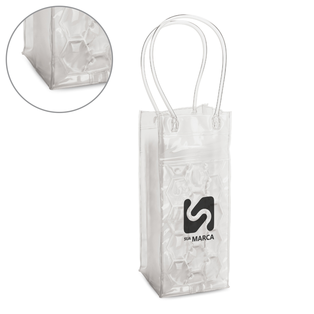 Sacola refrigeradora para 1 garrafa. PVC. Alças de 35 cm. 100 x 250 x 100 mm.