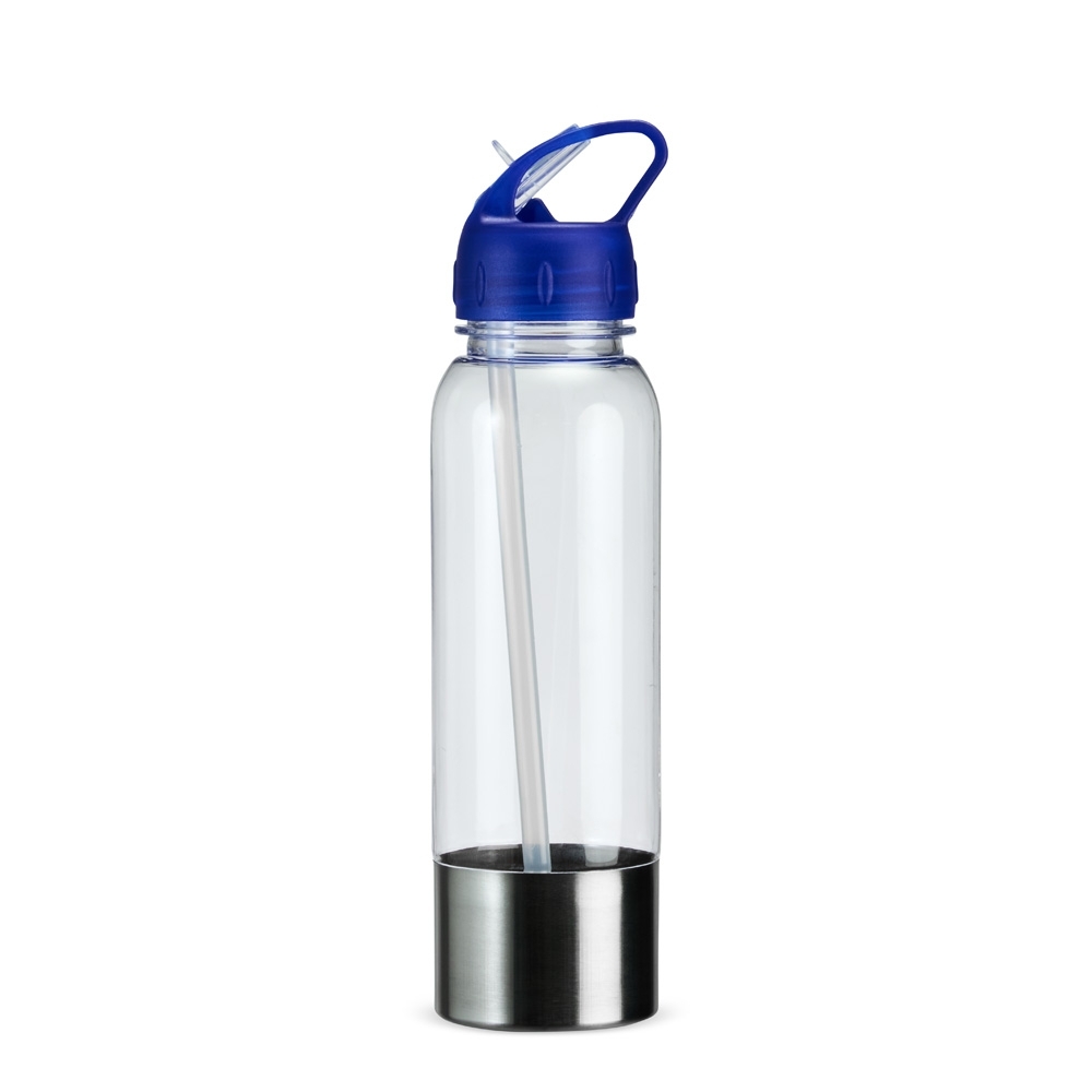 Descrição: Nossa squeeze combina a leveza e a resistência do plástico com a durabilidade e o toque estético de uma base metálica. Com tampa rosqueável e bico prático, ela ainda acompanha um canudo para facilitar a hidratação em qualquer momento, sem derramamentos. Ideal para acompanhar em todas as atividades, essa garrafa une funcionalidade e design moderno na hora de consumir bebidas.