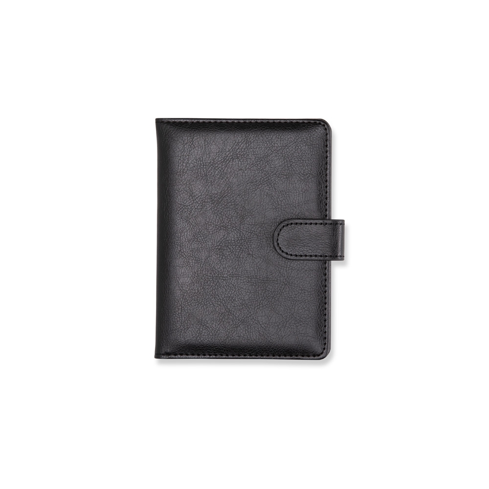 Descrição: Porta-passaporte em poliuretano (PU). Conta com fechamento magnético, dois bolsos internos, sendo um deles com quatro compartimentos para cartões, além de dois bolsos menores para cartões SIM.