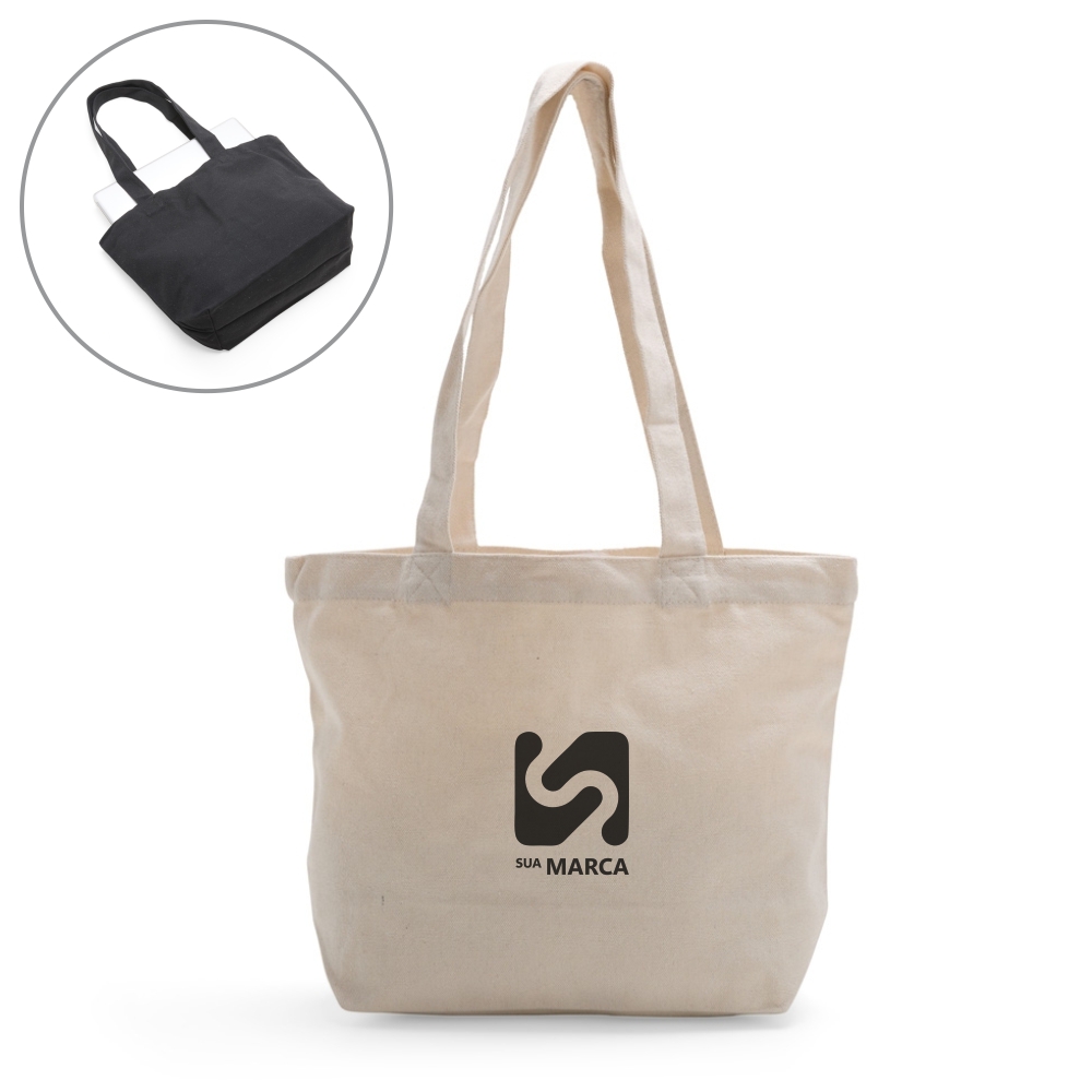 Sacola confeccionada em lona resistente a respingos dágua. Possui duas alças fixadas por costura interna.