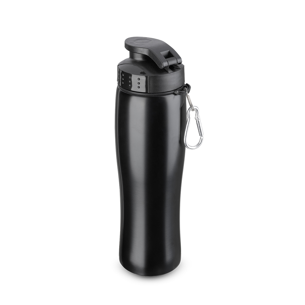 Garrafa de aço inox 750 ml com mosquetão.