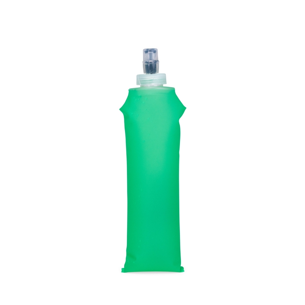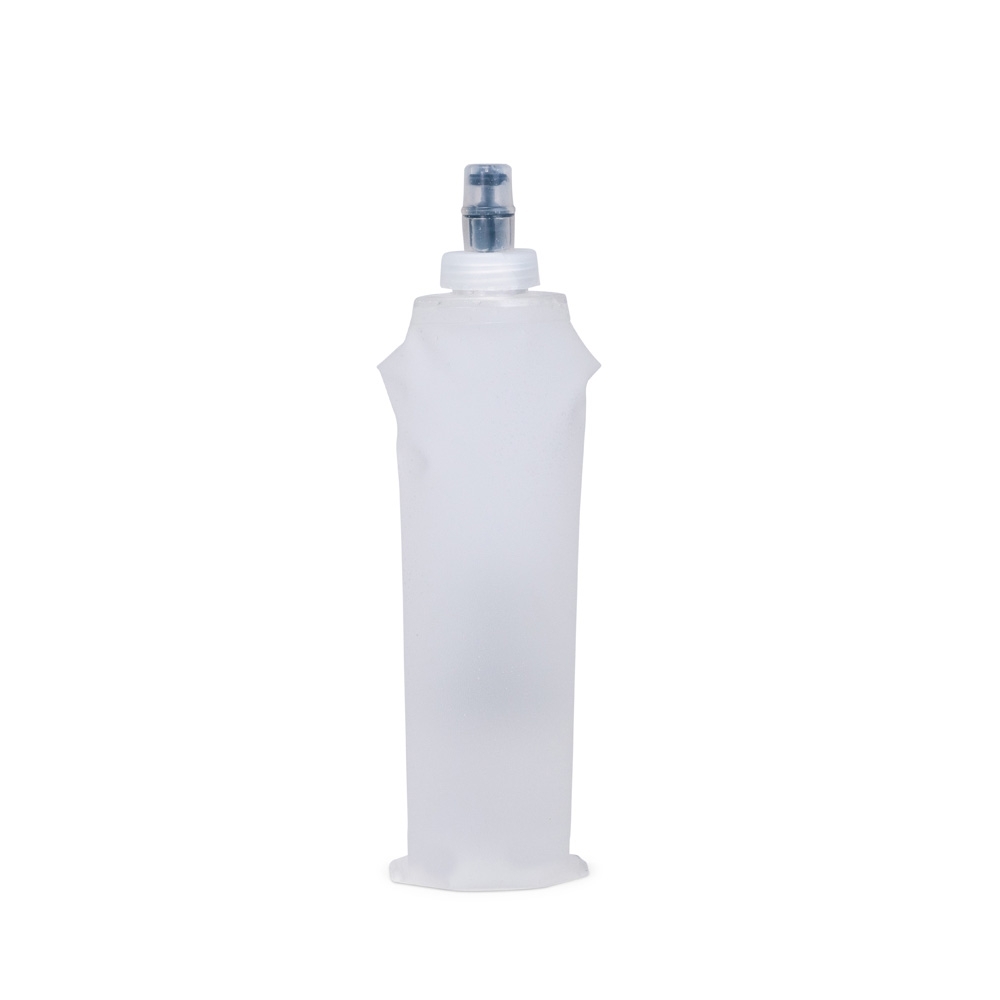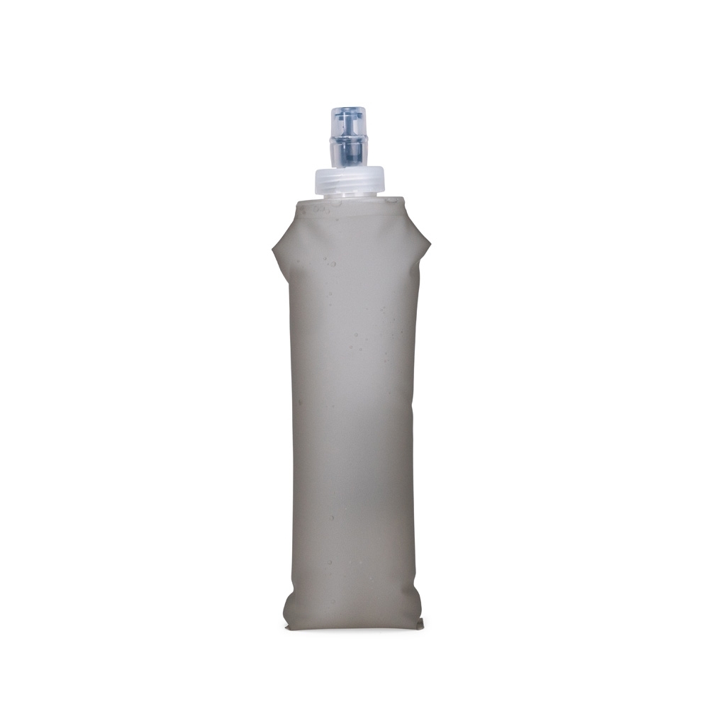Squeeze dobrável com capacidade para até 500ml. Feito em poliuretano termoplástico (TPU), material resistente a variações de temperatura e livre de BPA, possui bico rosqueável em plástico e bico em silicone macio, que permite a ingestão de líquidos ao morder levemente a ponta após inclinar o squeeze.