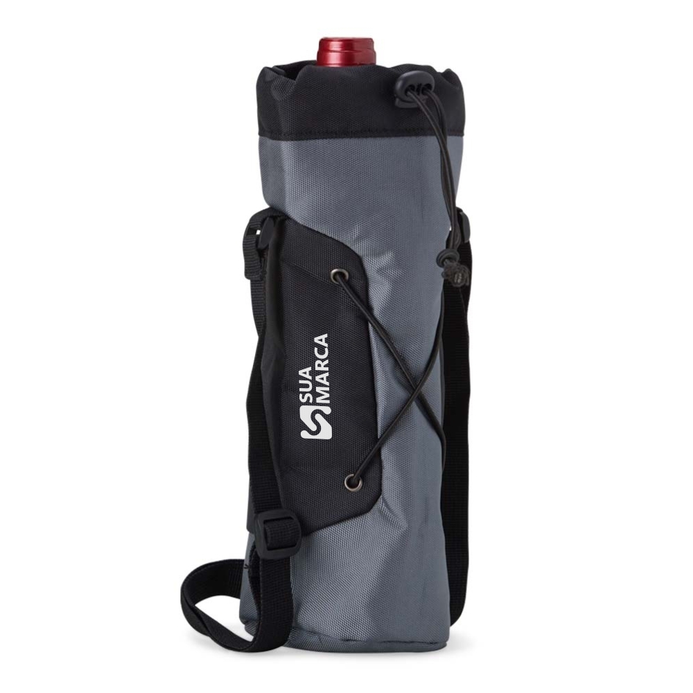 Descrição: Capa para garrafa em nylon grande com alça.