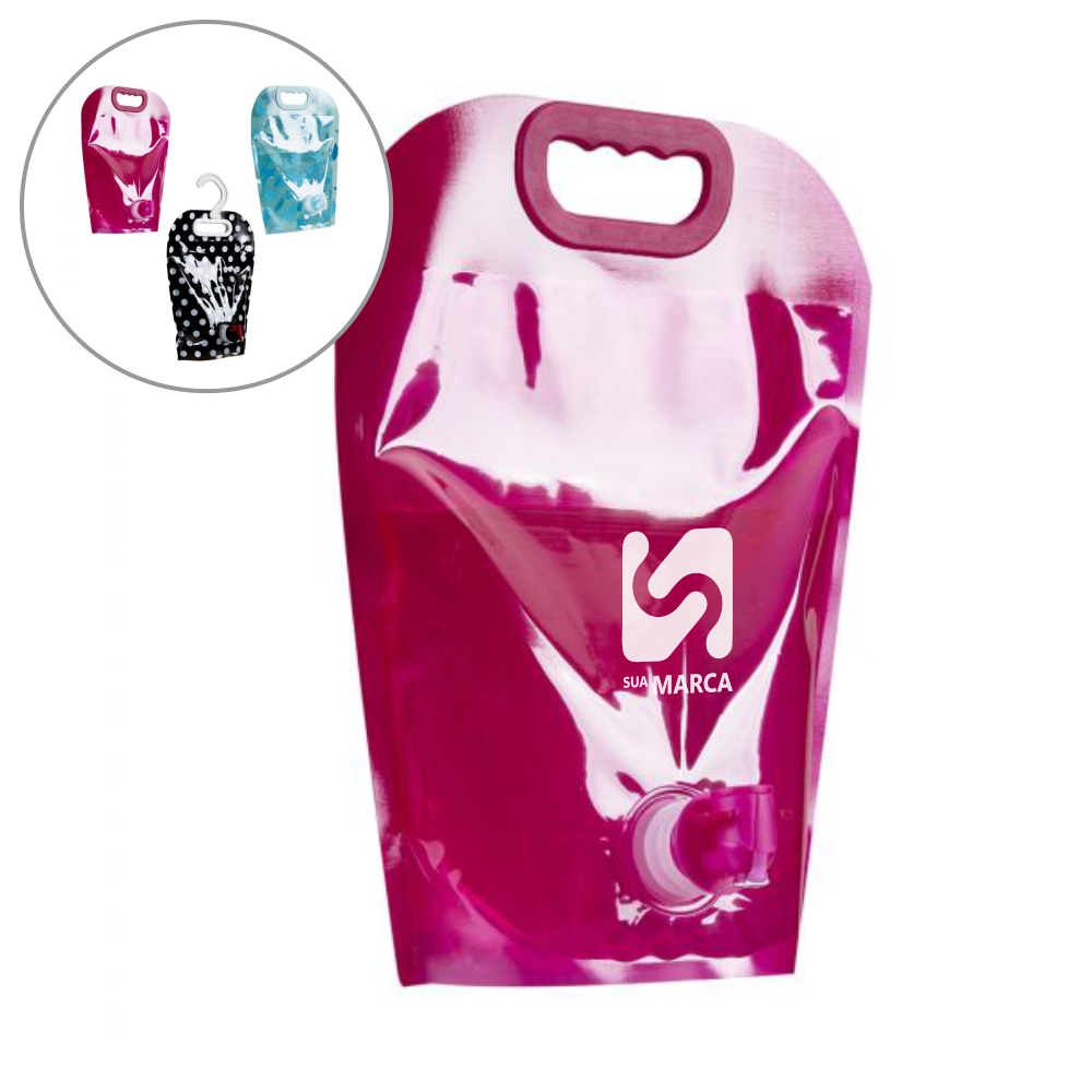 Galão dobrável de plástico com 3 litros. Galão colorido com pegador plástico superior, acompanha torneira plástica com lacre, basta removê-lo e encaixá-lo no suporte inferior pressionando pra dentro. Para utilização da torneira levante as hastes laterais.