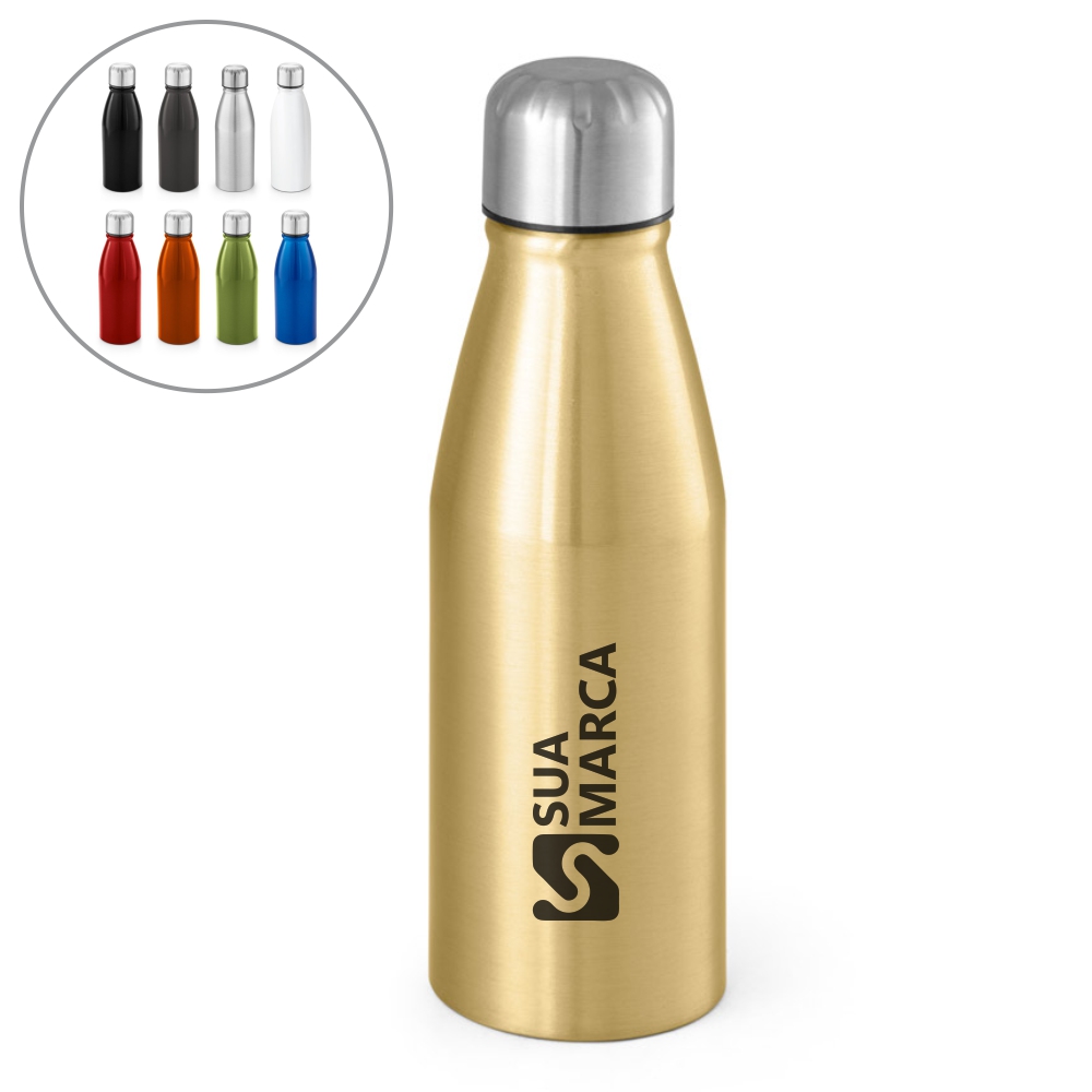 Garrafa. Alumínio. Tampa em aço inox. Capacidade: 500 ml. Food grade. Caixa branca 94657 vendida opcionalmente. Ø67 x 255 mm.