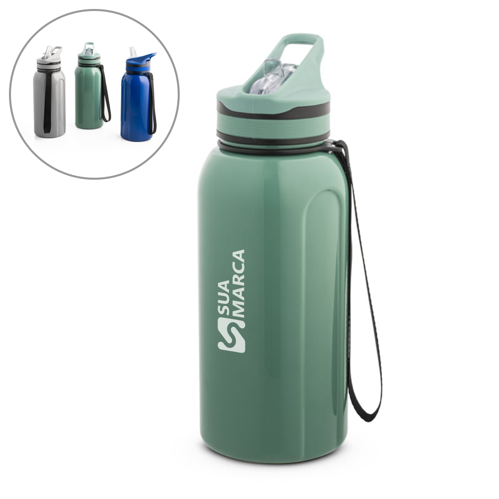 Garrafa esportiva em PETG com canudo interno, tampa com bebedouro e pega para facilitar transporte. Food grade. Grande capacidade até 1,2L.