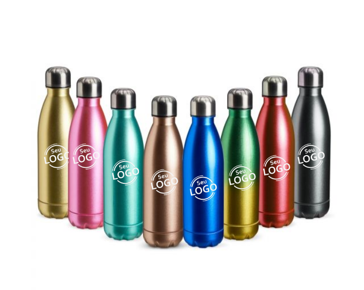 Descrição: Garrafa plástica com tampa de alumínio, capacidade de 680ml.