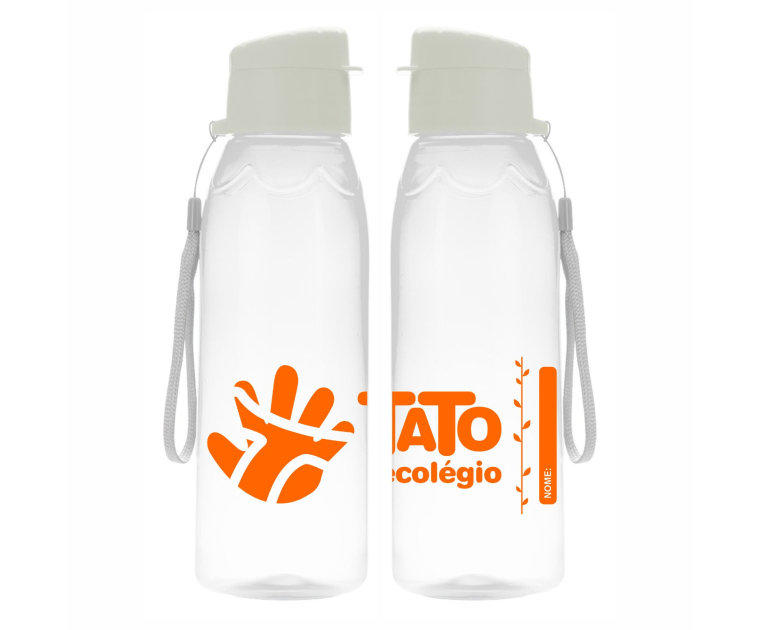 Garrafa plástica 700ml livre de BPA. Garrafa de polipropileno transparente colorida com detalhe superior em relevo, possui tampa rosqueável com abertura de bocal. Acompanha alça de nylon, pode ser encaixado no suporte da tampa.
